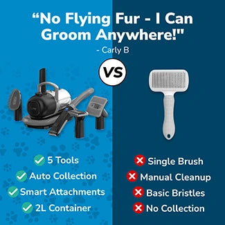 Meet the most convenient grooming tool ever invented. Say goodbye to fur-coated floors and furniture. furMesilently sucks up 99% of loose hair and allergens as you groom. No mess. No fuss. Just a pristine home in minutes.