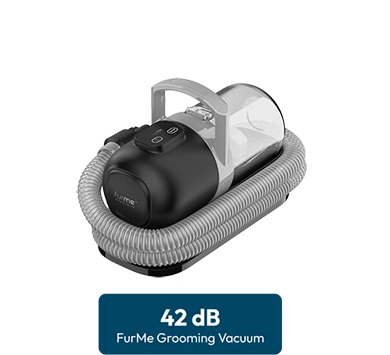 The furMe™ is about half the noise level of a typical modern vacuum: only 42 dB at the lowest setting. Think about as low as a running refrigerator. Thanks to the ultra-quiet motor, furMe is fantastic for senior, special needs pets, or pets with high anxiety. Have a pet that is terrified of vacuums in general? There's no reason not to try the furMe with our 40 day worry-free return policy. With the right introduction by our tried and tested acclimation steps, any pet can be groomed with furMe!