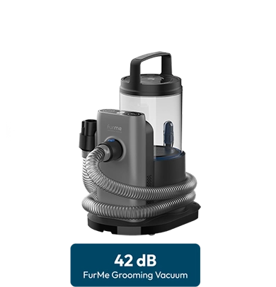 The furMe™ is about half the noise level of a typical modern vacuum: only 42 dB at the lowest setting. Think about as low as a running refrigerator. Thanks to the ultra-quiet motor, furMe is fantastic for senior, special needs pets, or pets with high anxiety. Have a pet that is terrified of vacuums in general? There's no reason not to try the furMe with our 40 day worry-free return policy. With the right introduction by our tried and tested acclimation steps, any pet can be groomed with furMe!